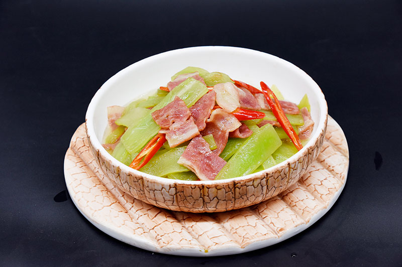 培根、萵筍、紅線椒、蒜瓣、調(diào)味配料